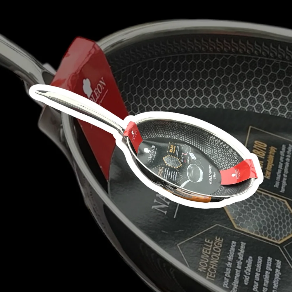 Boutique Guillet, votre expert en coutellerie et matériel de cuisine à proximité de Saint-Étienne, est fier de vous présenter sa nouvelle gamme de poêles en inox triple épaisseur avec un revêtement nid d'abeilles. Ce revêtement, gravé directement dans l'inox, assure une cuisson optimale et une durabilité exceptionnelle.